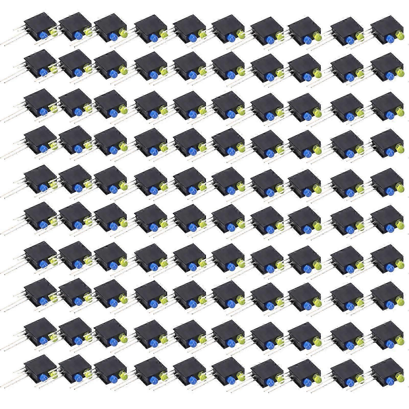 100Pcs LED Light Holder 90 Degree Bend Dual Hole Industrial Parts Black Up Yellow Down Blue