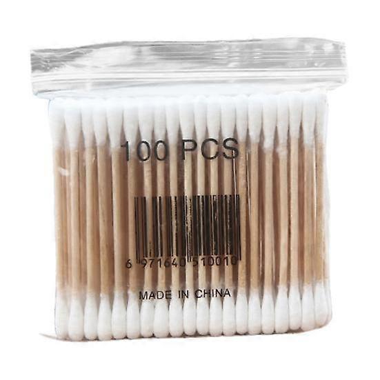 100Pcs Disposable Double Sided Wood Stick Cotton Swab Makeup Cleaning Applicator
