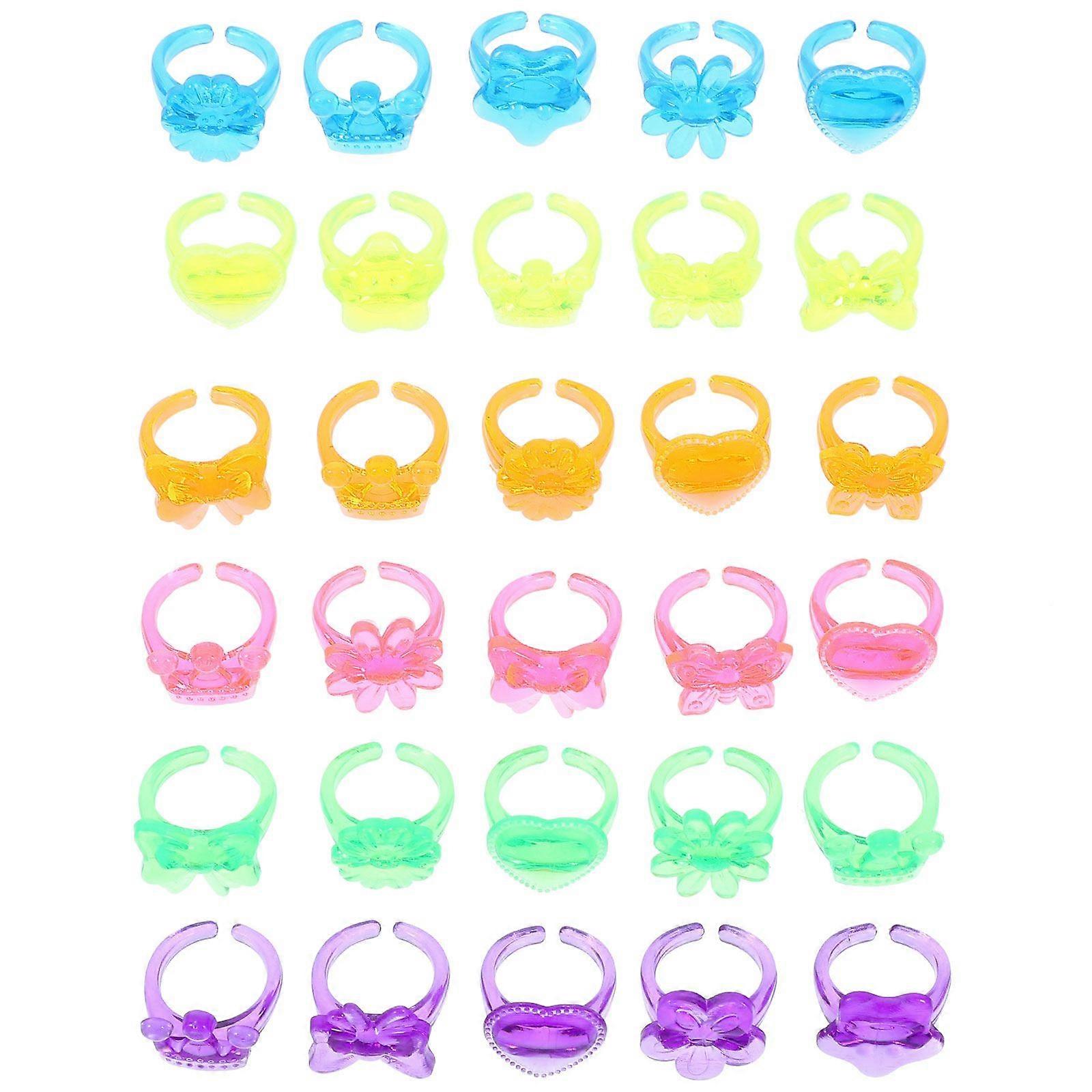 100Pcs Plastic Rings Party Favor Rings Little Girl Jewelry Dress Up Play Toys