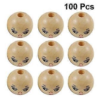 100pcs Round Wood Bead Diy String Bead Accessory Laughing Face Wood Bead (18mm)