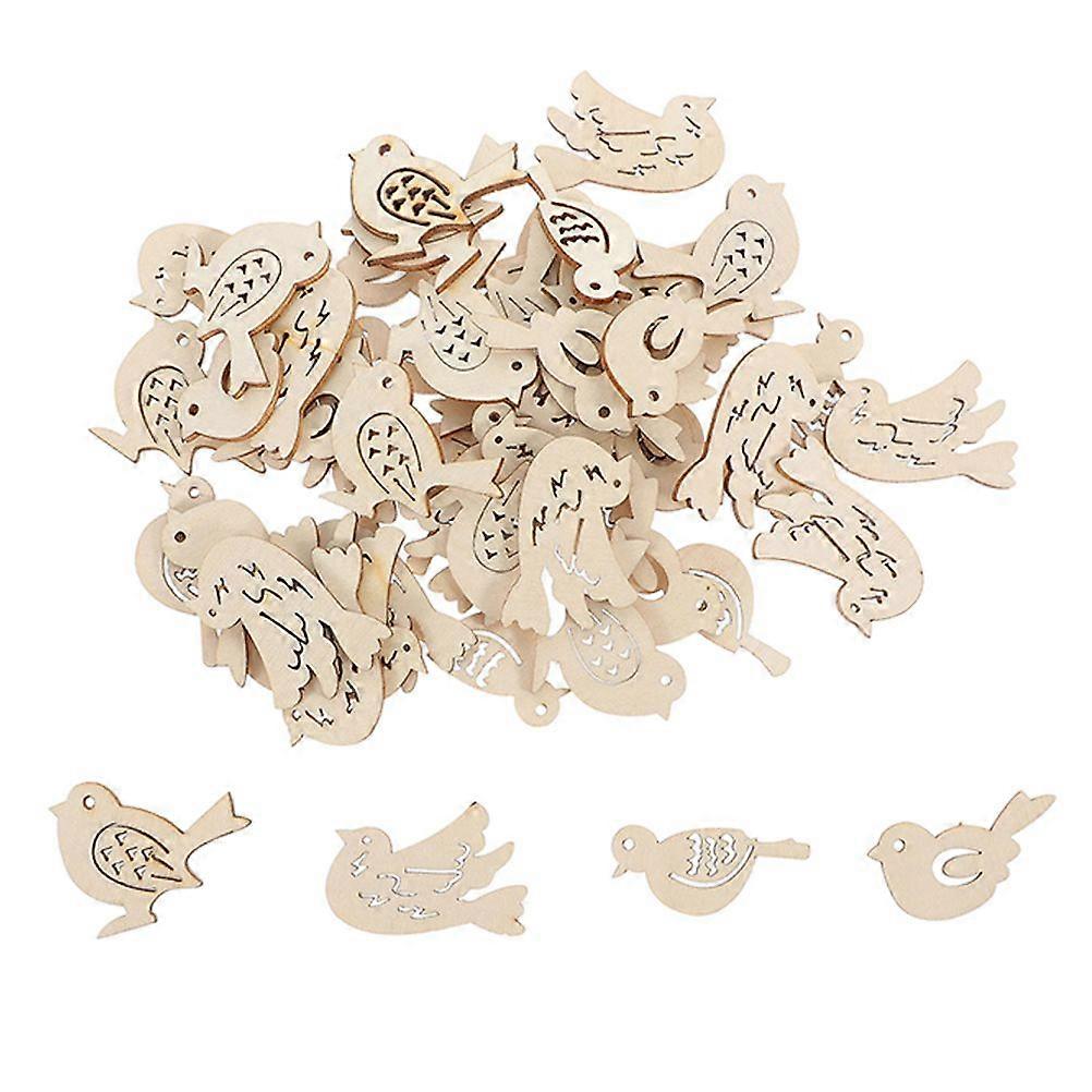 100pcs Handcrafted Wooden Bird Ornaments for Kids DIY Craft Unfinished Bird Cutouts for Home Decor Blank Cutouts for Crafting