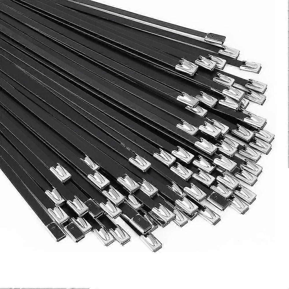 Metal Zip Ties Black 100Pcs 11.8 Inch 304 Stainless Steel Epoxy Coated Cable Tie for Machinery, Vehicles, Farms, Cables