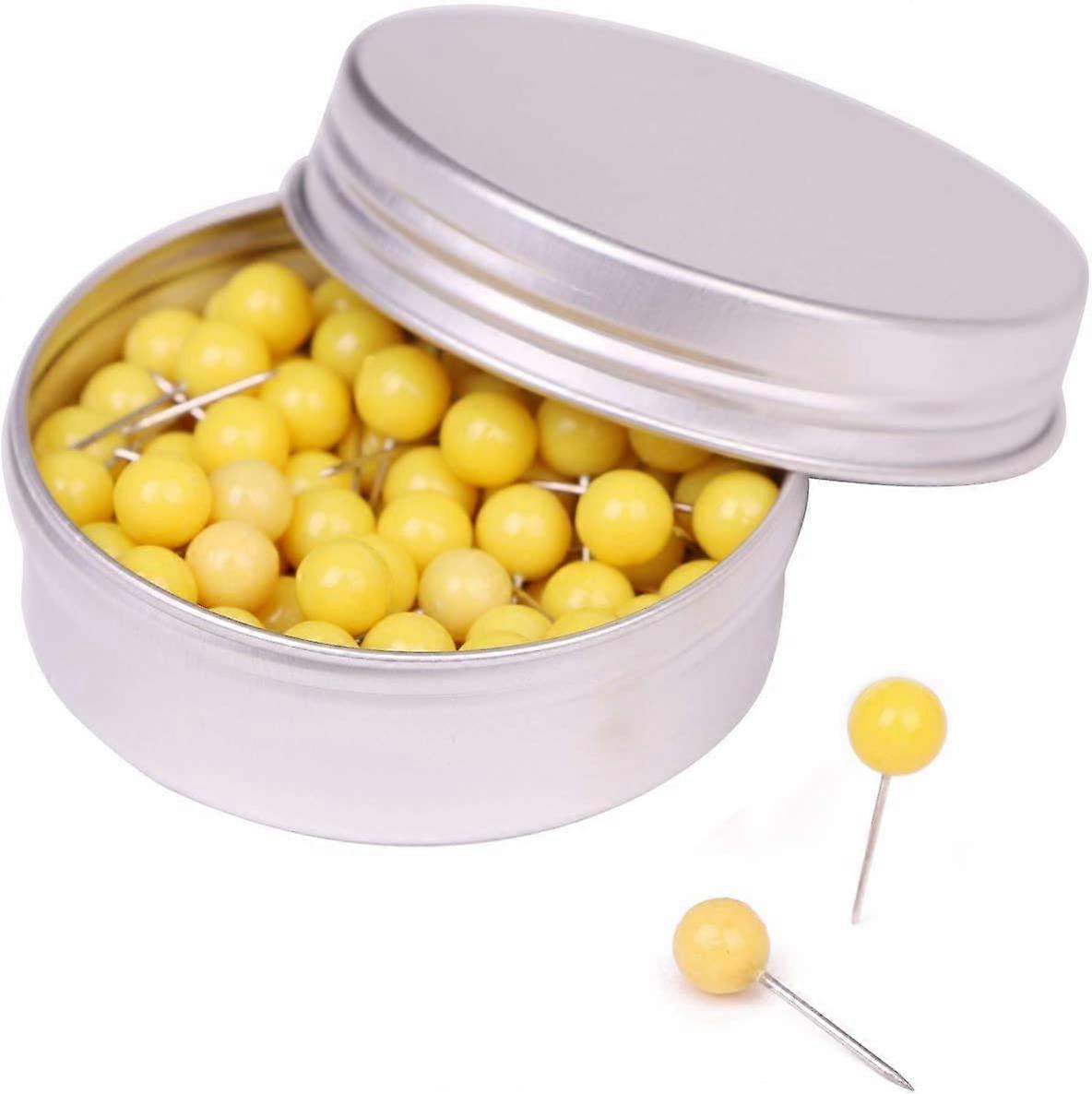 100PCS 1/4 Inch Small Round Head Map Tacks Pins for Home Office Bulletin Cork Board Use and DIY Craft Project (Yellow)