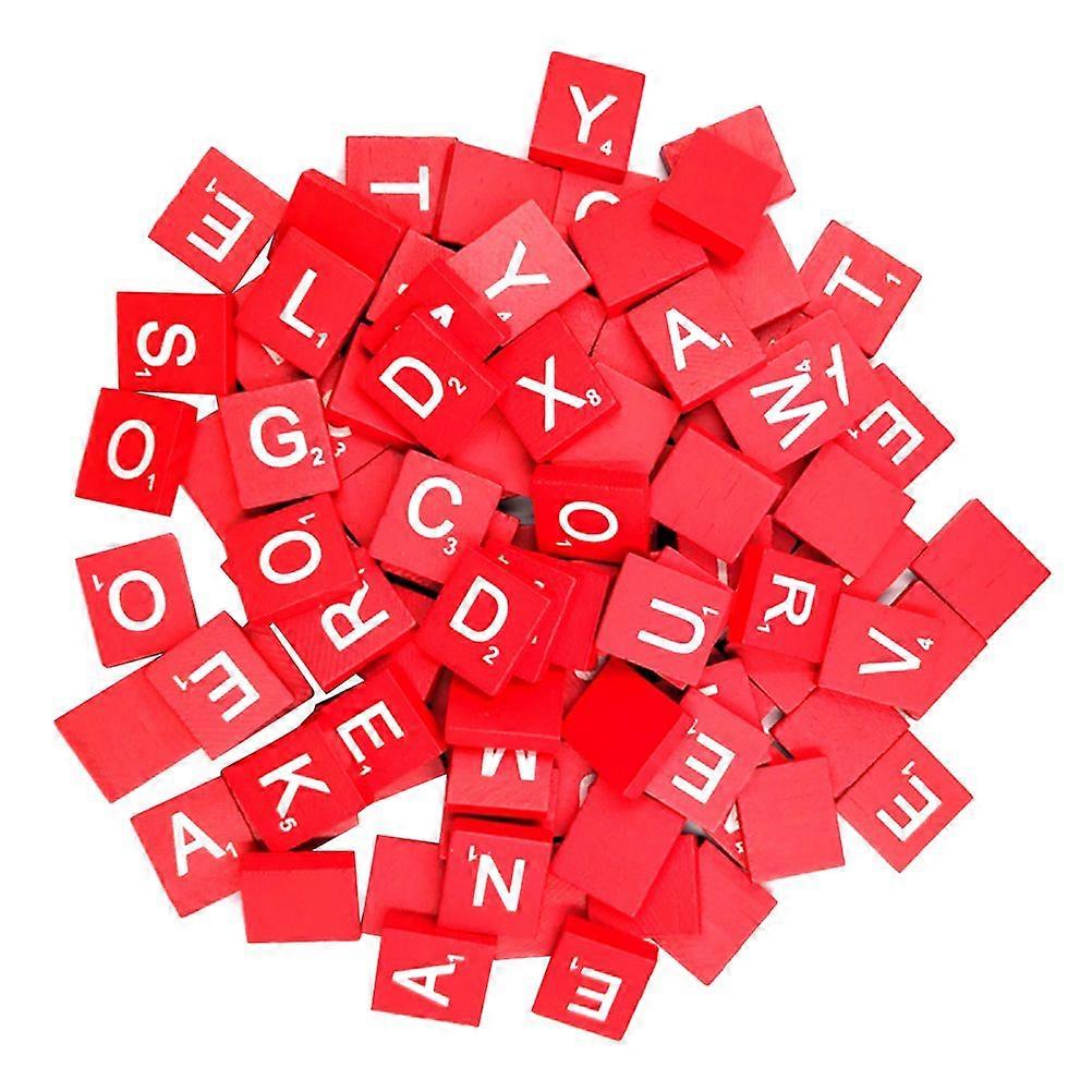 100PCS Red Natural Wood Chips DIY 26 English Letters Words Alphabet Puzzle Literacy Box Baby Intellectual Development Wooden Chips