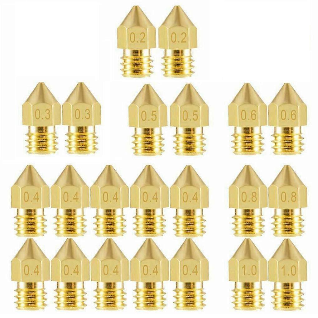 10/20/22Pcs 3D Printer Brass Nozzle Mixed Sizes 0.2/0.3/0.4/0.5/0.6/0.8/1.0mm Extruder Point Heads For 1.75/3.0MM MK8