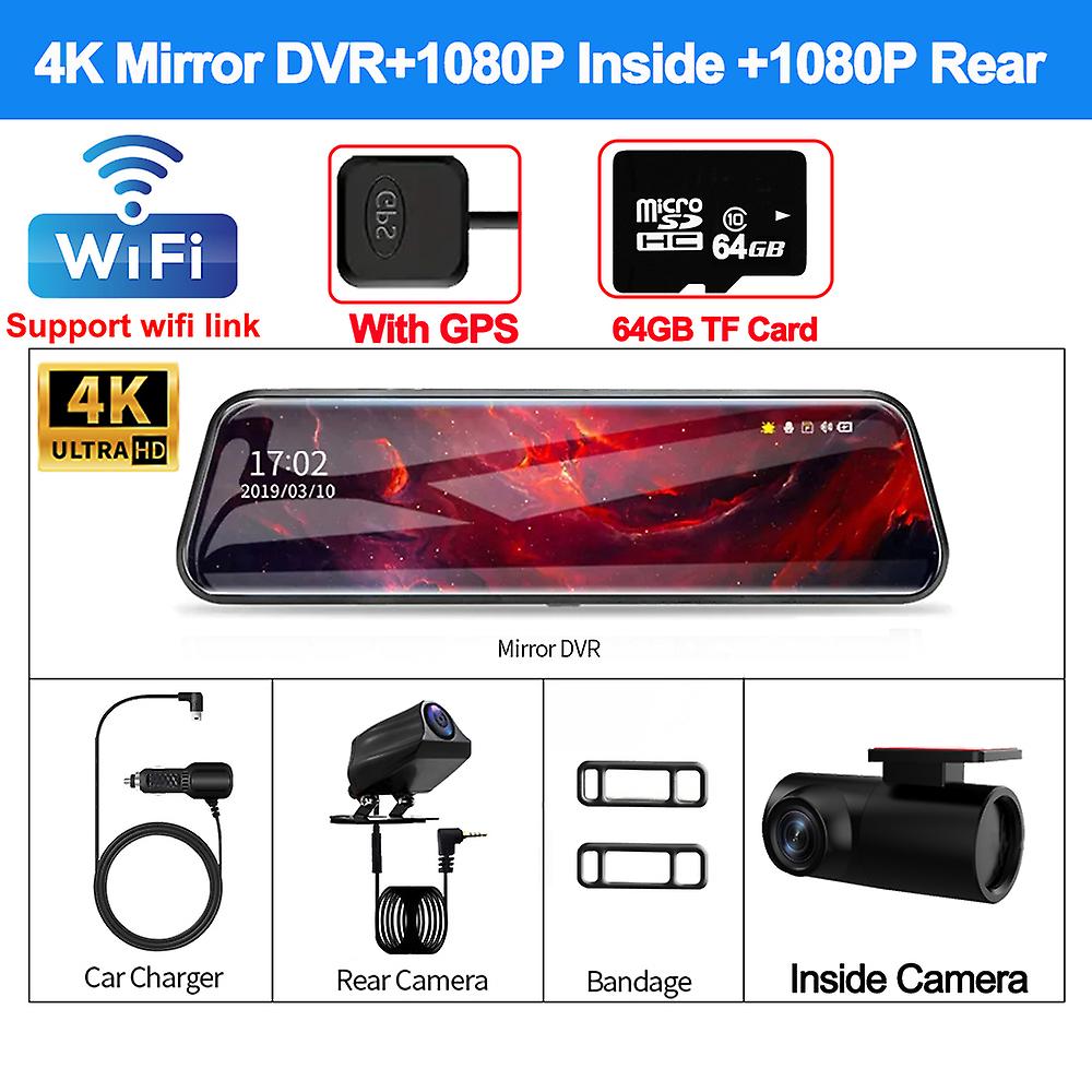 10Inch Rear View Mirror GPS 3Lens Dash Cam for Cars Wifi Car DVR 4K Video Recorder Rear View Camera for Vehicle Car Assecories