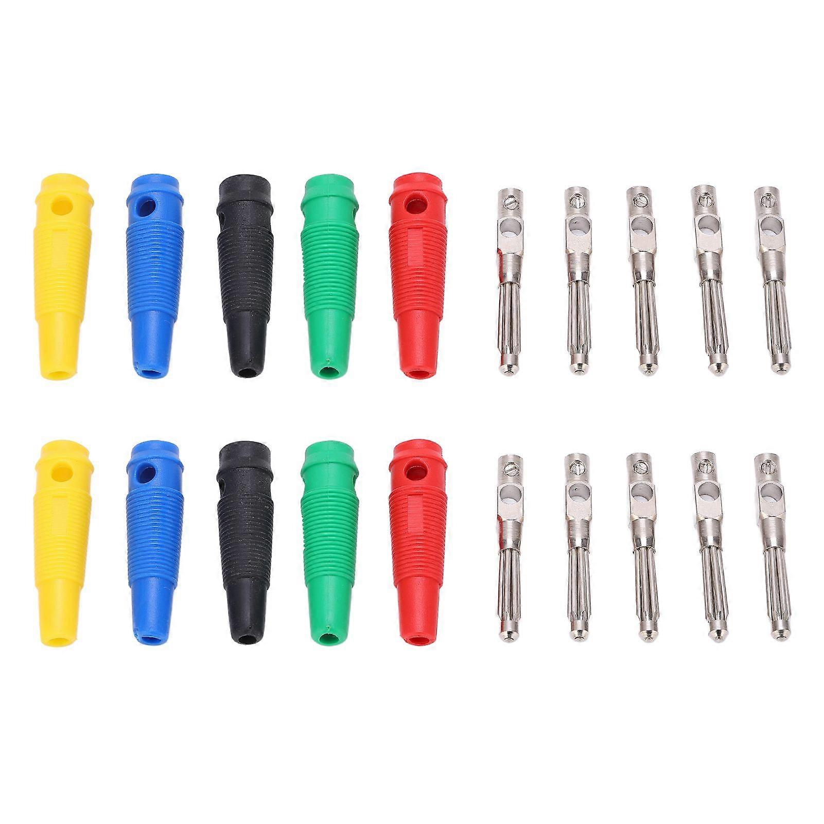 Feature:1. High Bearing: 4mm 7 pin banana plug can bear 32A high current and 1000V voltage, which is capable for home and office use, the set 10 sleeves for 5 colors.2. Copper Contact Part: Contact parts is made of pure copper and nickel plated, with little transmission loss and not easy to oxidize.3. Flame Retardant Sheath: These PVC non slip insulating sheath has a certain flame retardant, can keep you safe during work.4. Strong Material: Made of PVC and copper material, has good transmission performance, good contact performance, and high resistance to plug.5. Screw Connection: Use screws to connect, no need for welding, the tail of the screw wire also allows cable welding, plug side can even pole interplug.Specification:Item Type: 4mm Banana PlugContact Material: Pure Copper, Copper Plated NickelInsulation Material: PVCColor: Red, Black, Blue, Yellow, GreenApplication: For Audio Cable For Speaker, TV, Computer, Etc.Product Size: Plug Length: Approx.61mm/2.4inWeight: Approx.70g/2.5ozMaximum Wiring Diameter: 3.5mm/0.14inMaximum Current: 32AWithstand Voltage: 1000 VConnection: Screw Connection.Package List:10 x Connector2 x Red Sleeve2 x Black Sleeve2 x Blue Sleeve2 x Yellow Sleeve2 x Green Sleeve