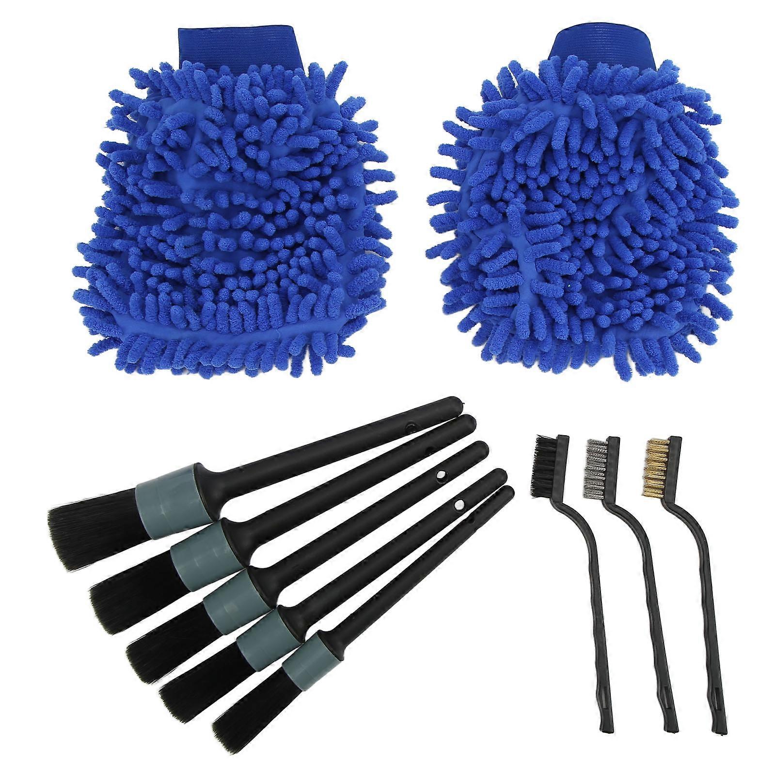 10pcs Car Detailing Brush Kit Wash Mitt Wire Brushes Flexible Soft Universal for Bumpers Mudguards Wheels