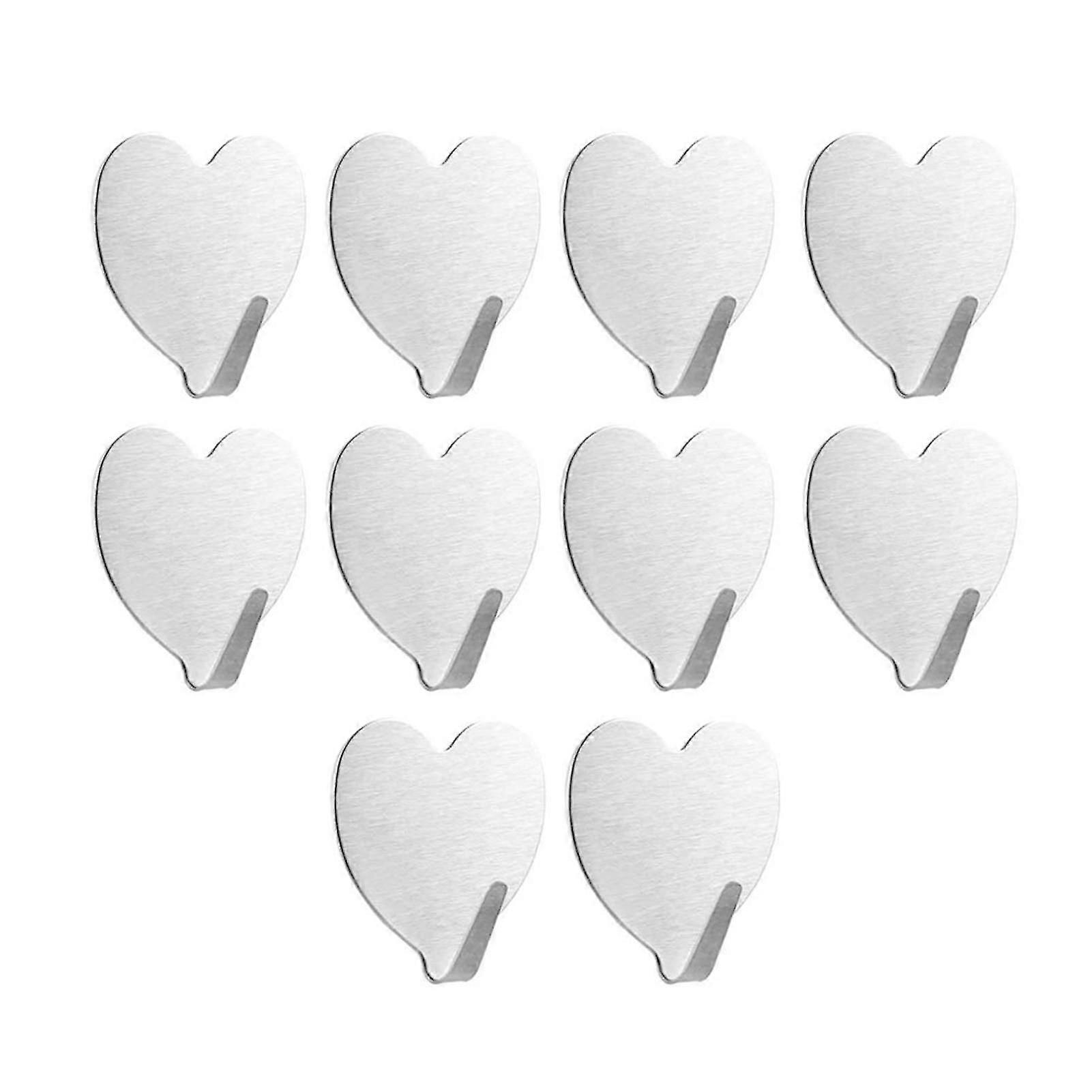 10pcs Self Adhesive Hooks,heart Shape Stainless Steel Wall Hanger For Robe, Coat, Towel, Keys, Bags, Home, Kitchen