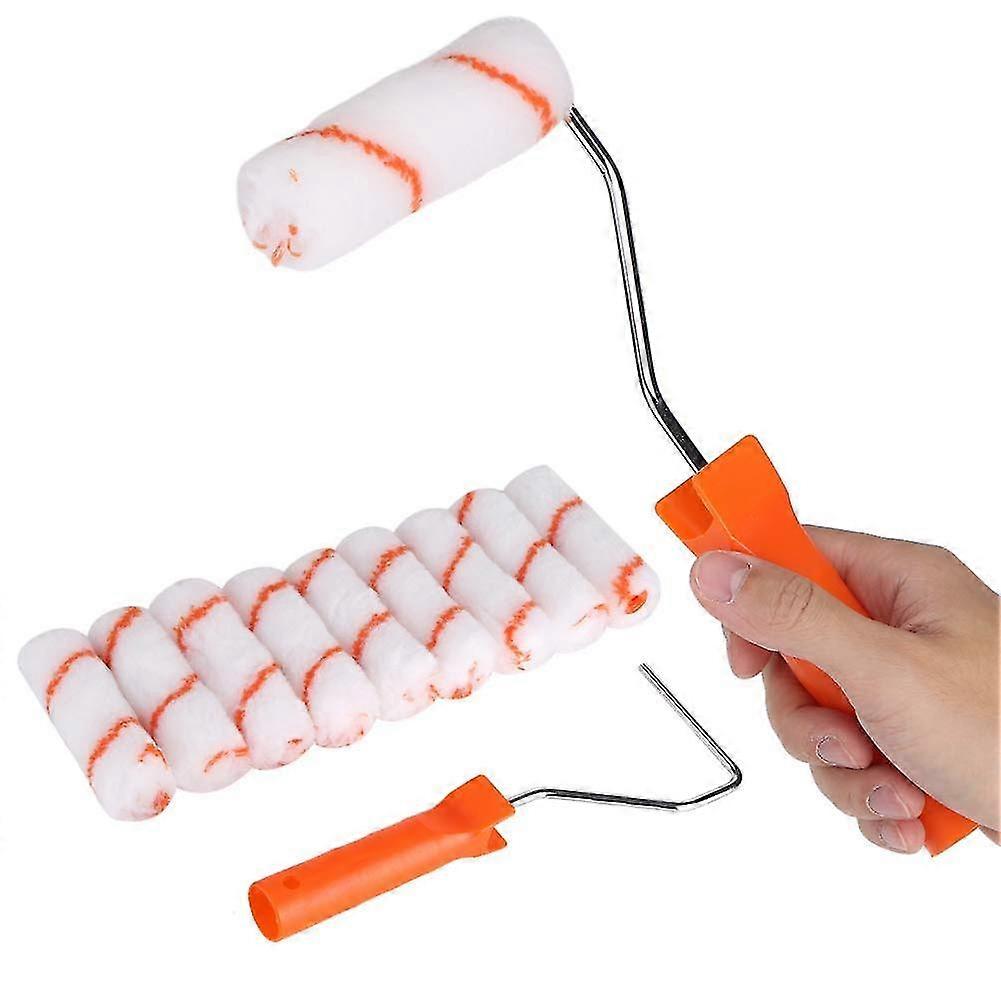 10pcs 4 Inch Roller Brush With 9 Roller Covers Replaceable Tools Kit For Home And Painting Walls