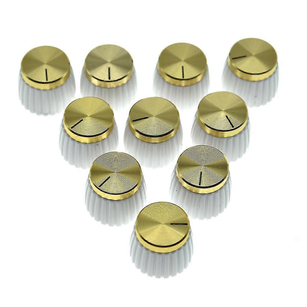 10pcs Guitar Amp Amplifier Push On Fit Knobswhite+gold Coverwith Chrome Cap Top Fits