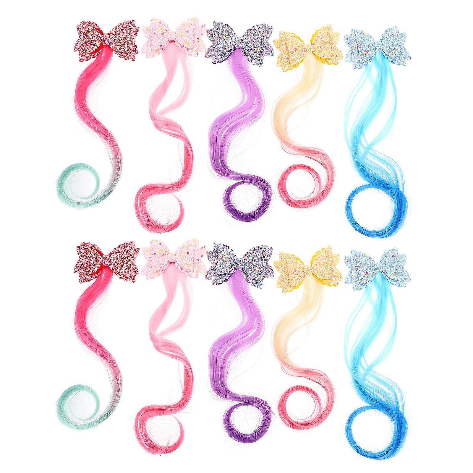 10Pcs Clip Hair Extensions With Bow-Knot Design For Kids Festivals Parks Hair Accessories Assorted Colors