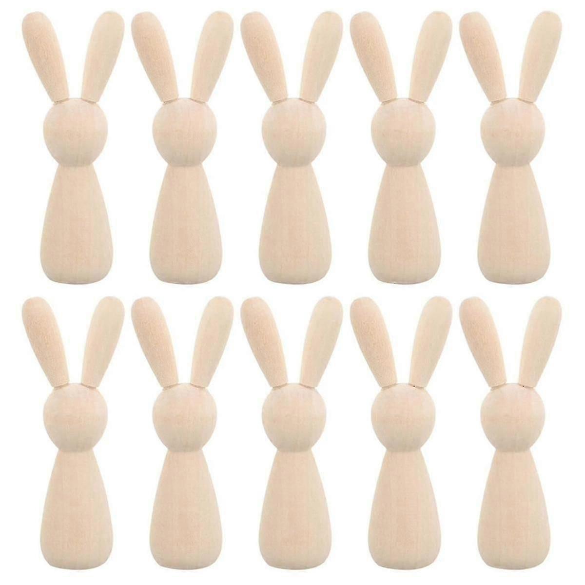 10Pcs Unfinished Wooden Rabbit Doll Figure Unpainted Peg Dolls DIY Blank Wood Bunny Puppet Craft Art Easter Decoration MiY