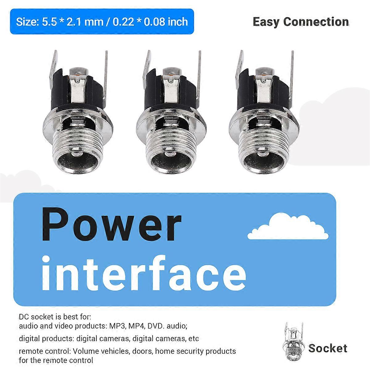 10pcs DC Power Supply Jack Female Panel Mount Connector 5.5x2.1mm New