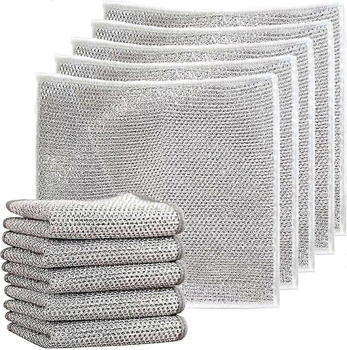 10pcs Wire Dishwashing Rags, Multipurpose Reusable Kitchen Cleaning Cloths for Dishes, Stove, Sink – Grey Single Layer