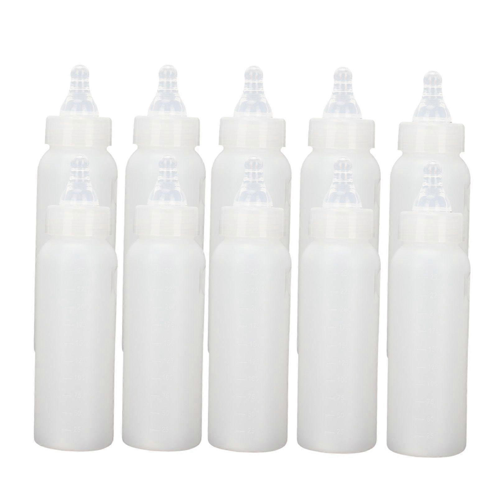 10pcs Small Animal Feeding Bottle Soft Silicone Nipple Thickened Pet Milk Bottle with Scale for Pig Cattle Sheep Cat Dog