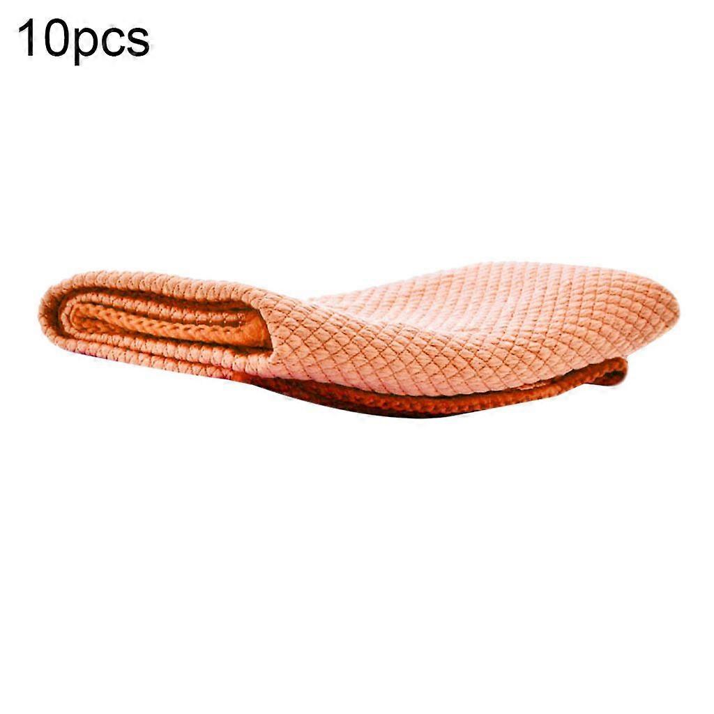 10pcs Household Kitchen Soft Cleaning Duster Tableware Bowl Dish Cloth Towel - Orange