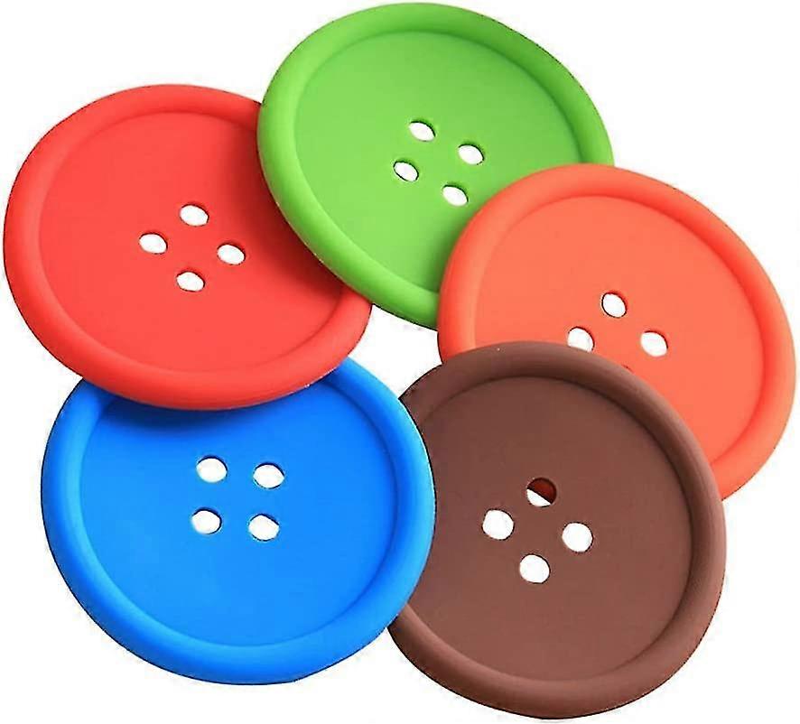 10Pcs Silicone Drink Coaster,Colorful Round Button Shaped Cup Cushion Holder,Coffee Drink Mat,Heat Insulation Pad With Deep Grooved And Non-Slip Place