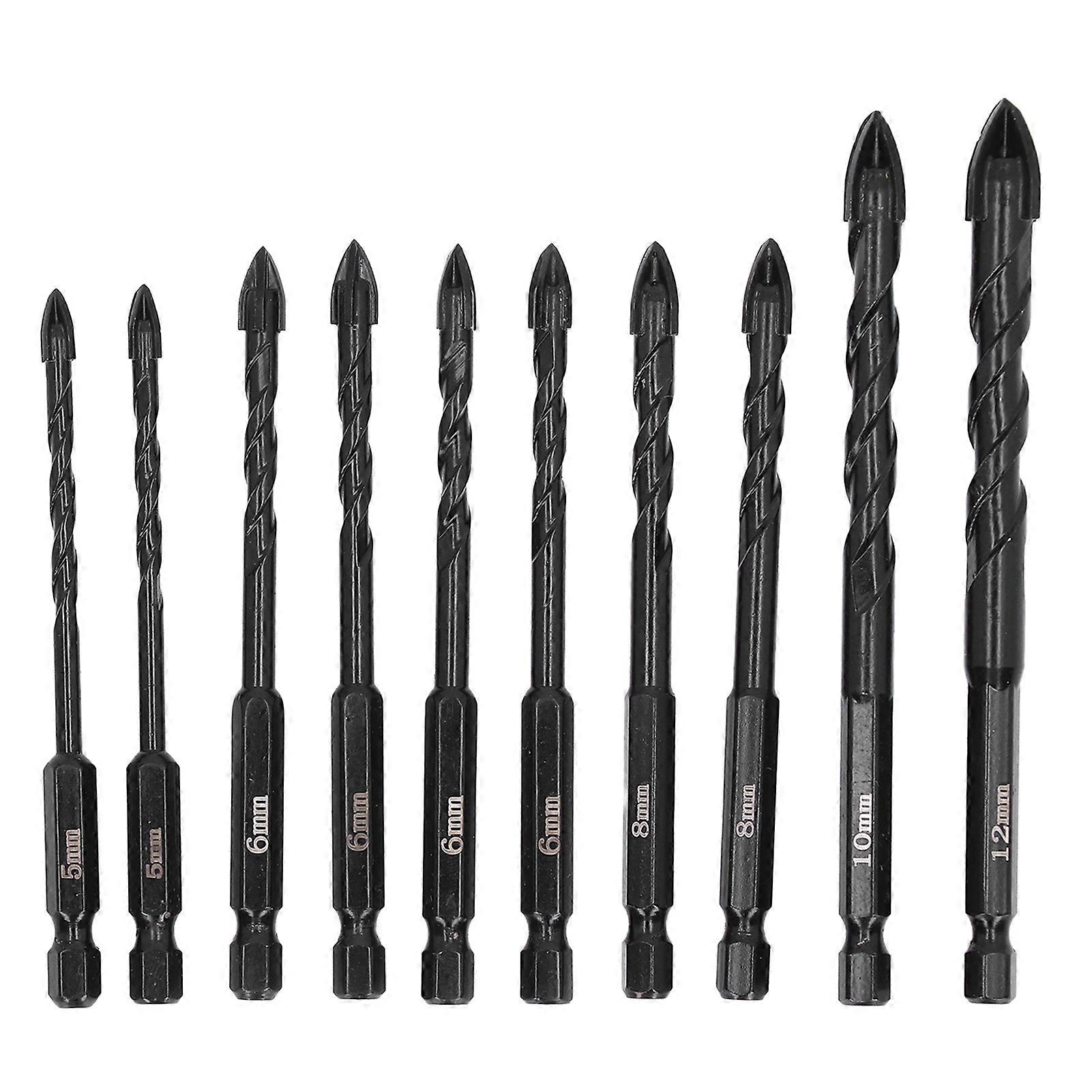 10pcs Cross Screw Drill Bit 3 Flute Cemented Carbide Masonry Twist Bits With Hex Shank