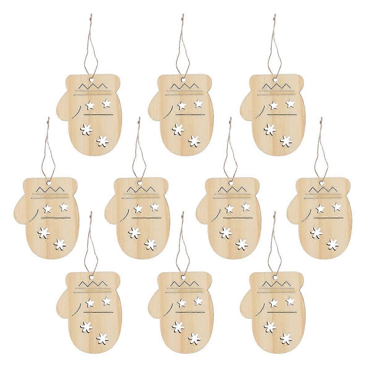 10pcs Christmas Wooden Cutouts Hanging Gift Tag Creative Gloves Shape Pendant Craft Ornament Christmas DIY Pendant Accessories Decorative Props with H