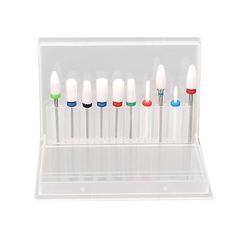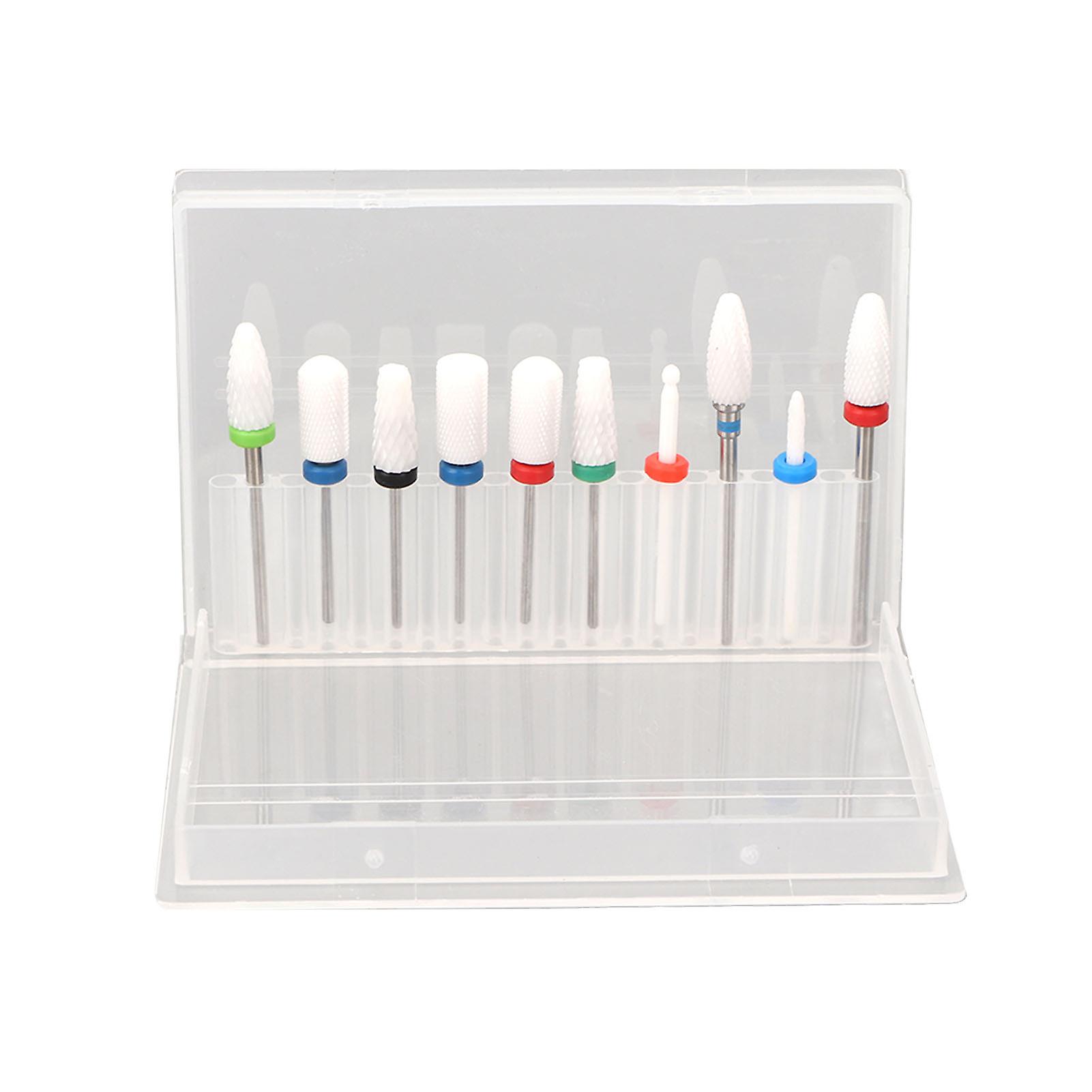 10pcs 20 Holes Nail Drill Bits Holder Ceramic Dustproof Nail Grinding Head Set for Manicure