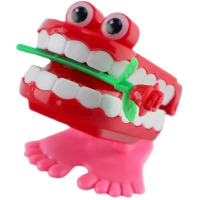 10pcs Clockwork Jumping Tooth Clockwork Funny Mouth Tooth With Eyes Flashing Novel Stunt Toys