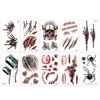 10Pcs Halloween Tattoo Stickers Scar Temporary Cosplay Body Art Decal Kids Easter Finger Realistic Pattern Face Stickers Spooky Atmosphere Party Event