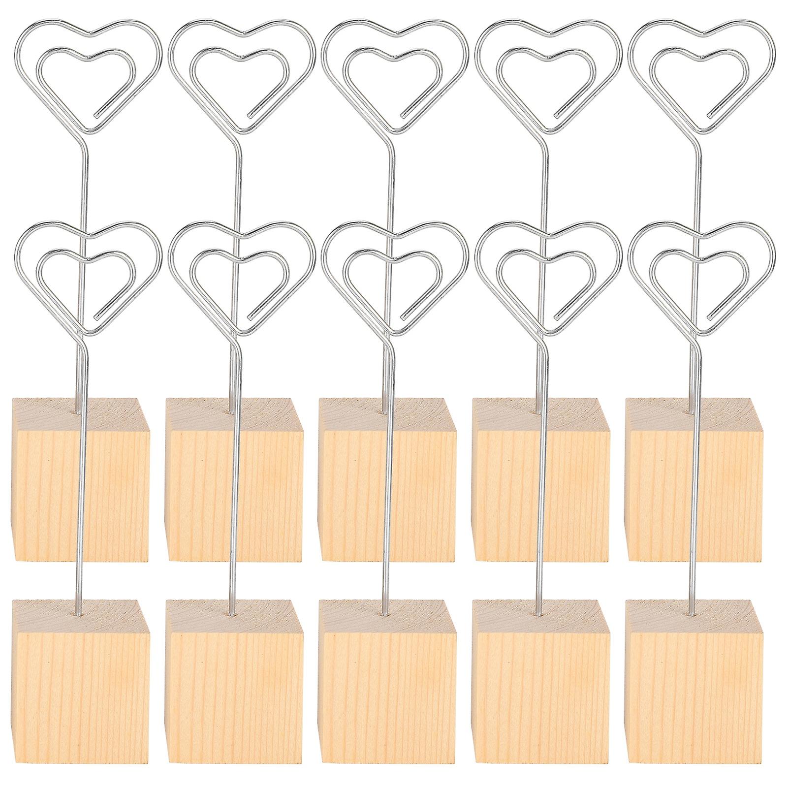10Pcs Photo Holder Note Message Card Picture Metal Clip Stand Solid Wood Base Craft