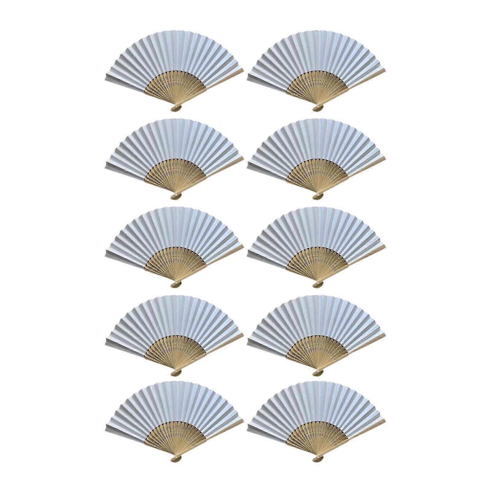 10Pcs Handheld Wedding Fans White Paper Hand Fan for Picnic Home Decoration