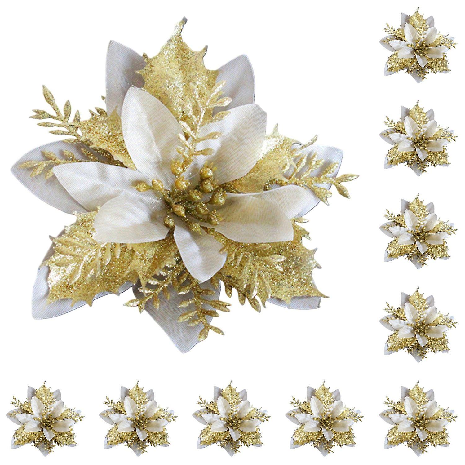 10Pcs/Set Christmas Artificial Flower Glitter Leaves Red Golden Silver-color 3 Layers Xmas Tree Wrea