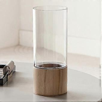 10x25cm Minimalist Flower Vase with Wooden Base PET Transparent Cylinder Vase Living Room Decoration