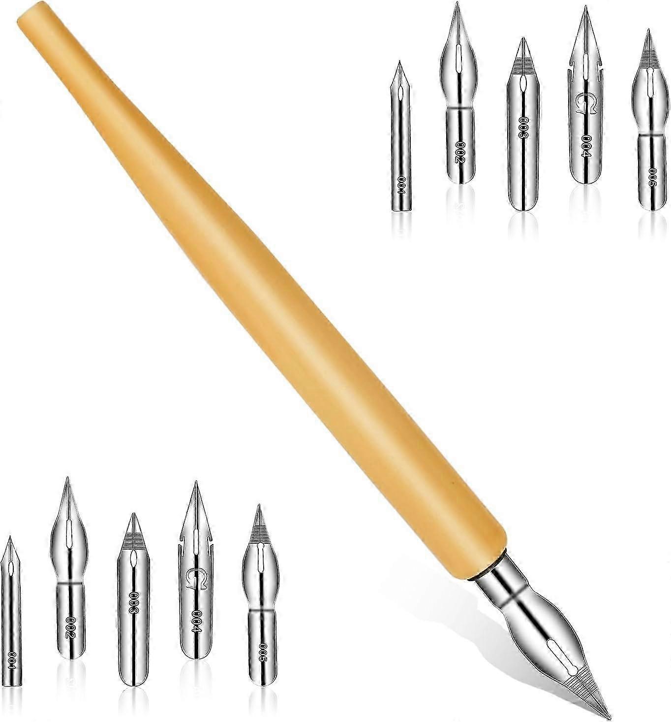 11 PCS Comic Pen Nib Set - Wooden Holder & 10 Steel Nibs