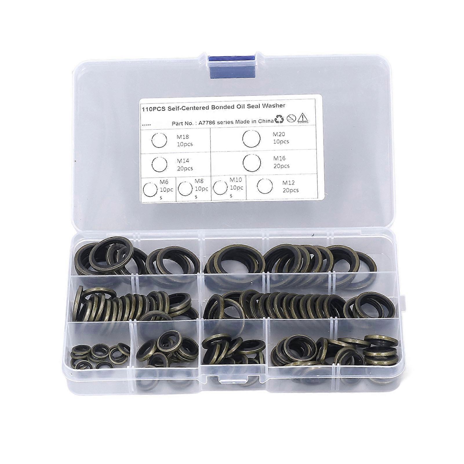 110 Pcs Oil Seal Washer M6 M8 M10 M12 M14 M16 M18 M20 Rubber Bonded Seal Oil Gasket Metal Sealing Washer