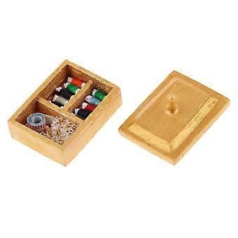 1/12 Scale Wooden Sewing Box Set Knitting Threaded Spool Dollhouse Miniature Decoration Kids Playset
