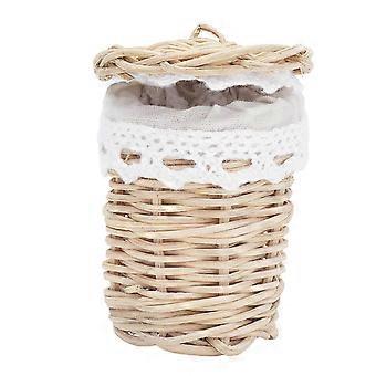 1/12 Doll House Basket Decoration Mini Bamboo Basket Doll House Accessory Lace Bamboo Basket Ornament