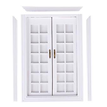 1/12 Dollhouse Miniature Exterior Wooden French Door - White