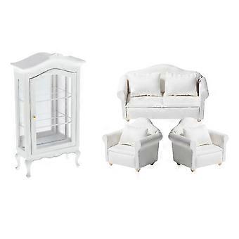 1:12 Dollhouse Mini White Cabinet And Sofa Armchair Furniture Set Decoration