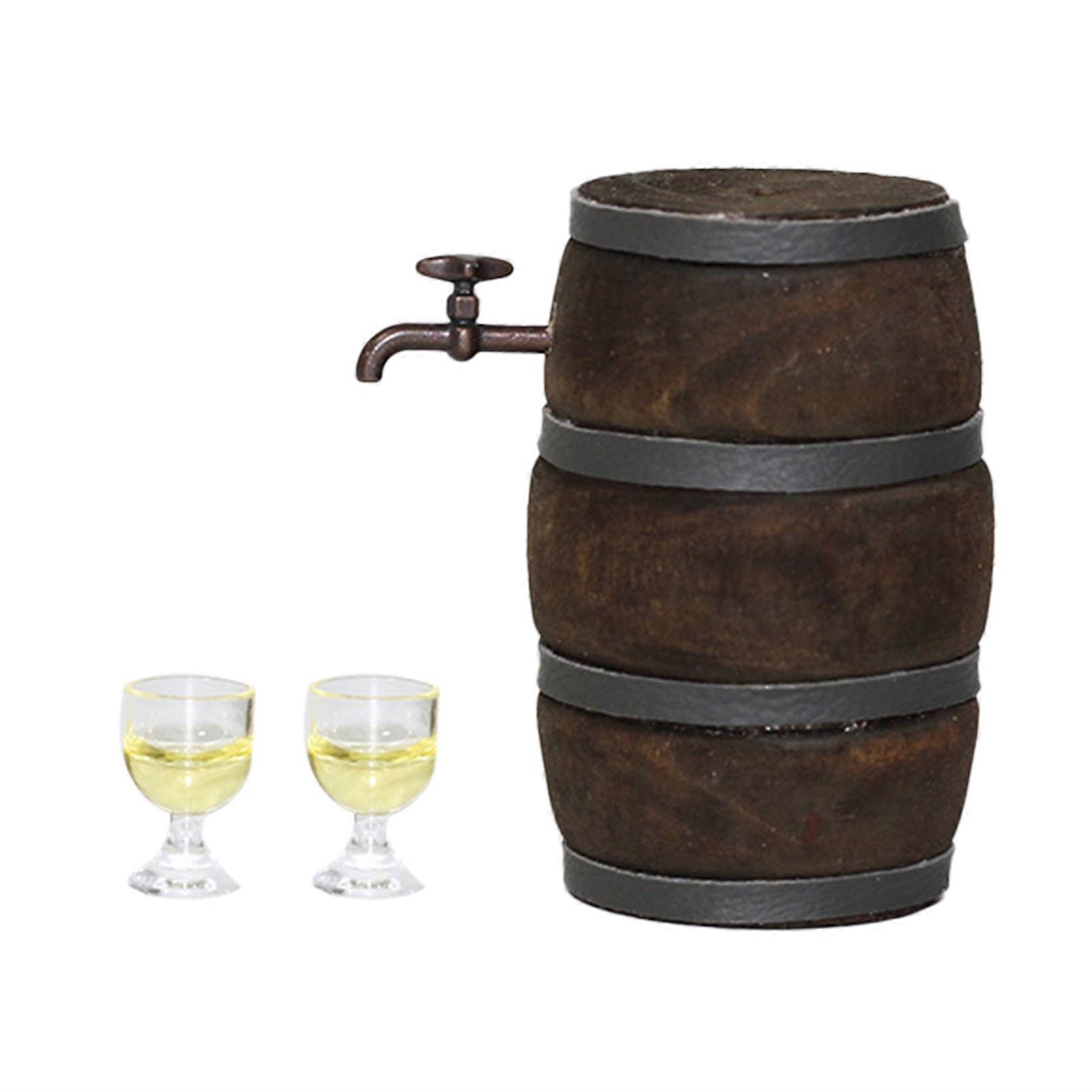 1:12 Miniature Red Wine Barrel Cute Wooden Dollhouse Accessories for Home KAESI