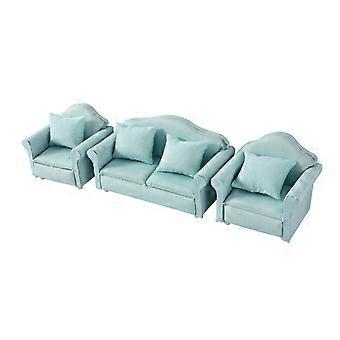 1/12 Miniature Sofa Set with Double and Armchair For Dollhouses Living Room With Cushion Modern Dollhouses Furniture