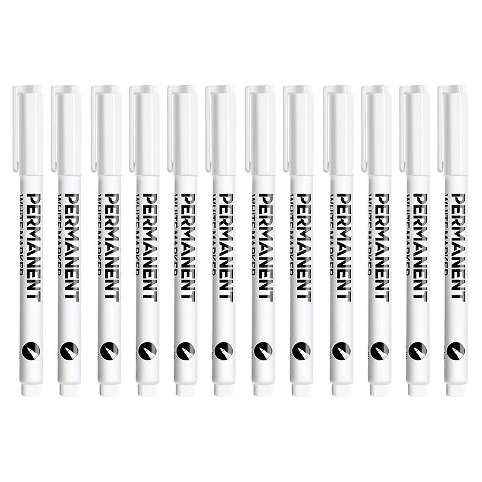 1/12Pieces White Permanent Marker 0.2mm Fine Tip Water Resistant Paint Pen For Fabric Wood Metal Wood Leather Glass