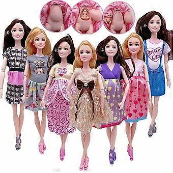 11.8''/30cm Fashion Movable Joints Pregnant Dolls Mom With 2 Babies On Her Belly Modern Dress Princess Doll