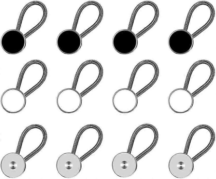 COMFORT BREATHE EASY: Those neck extenders are can made your shirts more comfortable to wear and save money from replacing too tight neck shirts, While your weight fluctuates a bit. EASY TO USE: Simply attach stretch collar extenders to the existing button on the shirts gives you quick extra space, it's perfect to use with tie. PREMIUM HIGH-QUALITY :These button are made of environmental protection plating and ultra-durable zinc alloythe top quality can help you reuse it EASY TO MATCH: There are 3 colors to match with different clothes, Black, white, and silver to choose from.It's easy to match your shirts skirt or jeans. PREMIUM BUTTONS: The size of the button Just 10mm (3/8) in diameter, its a 12-pack collar extenders. you will receive 4pcs white, 4pcs black and 4pcs silver.