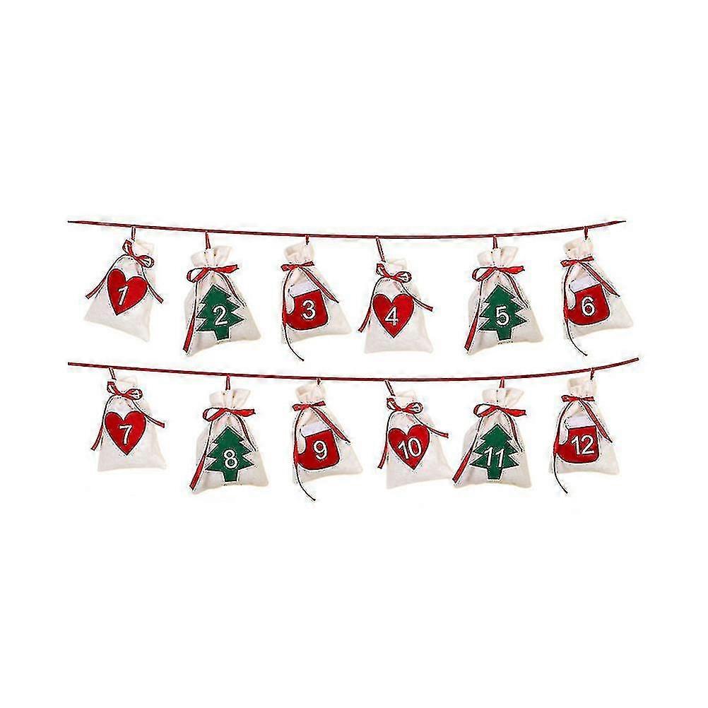 12pcs Calendar Christmas Wreath Hanging Advent Calendar New Year Gift Bag Christmas Party Decoration