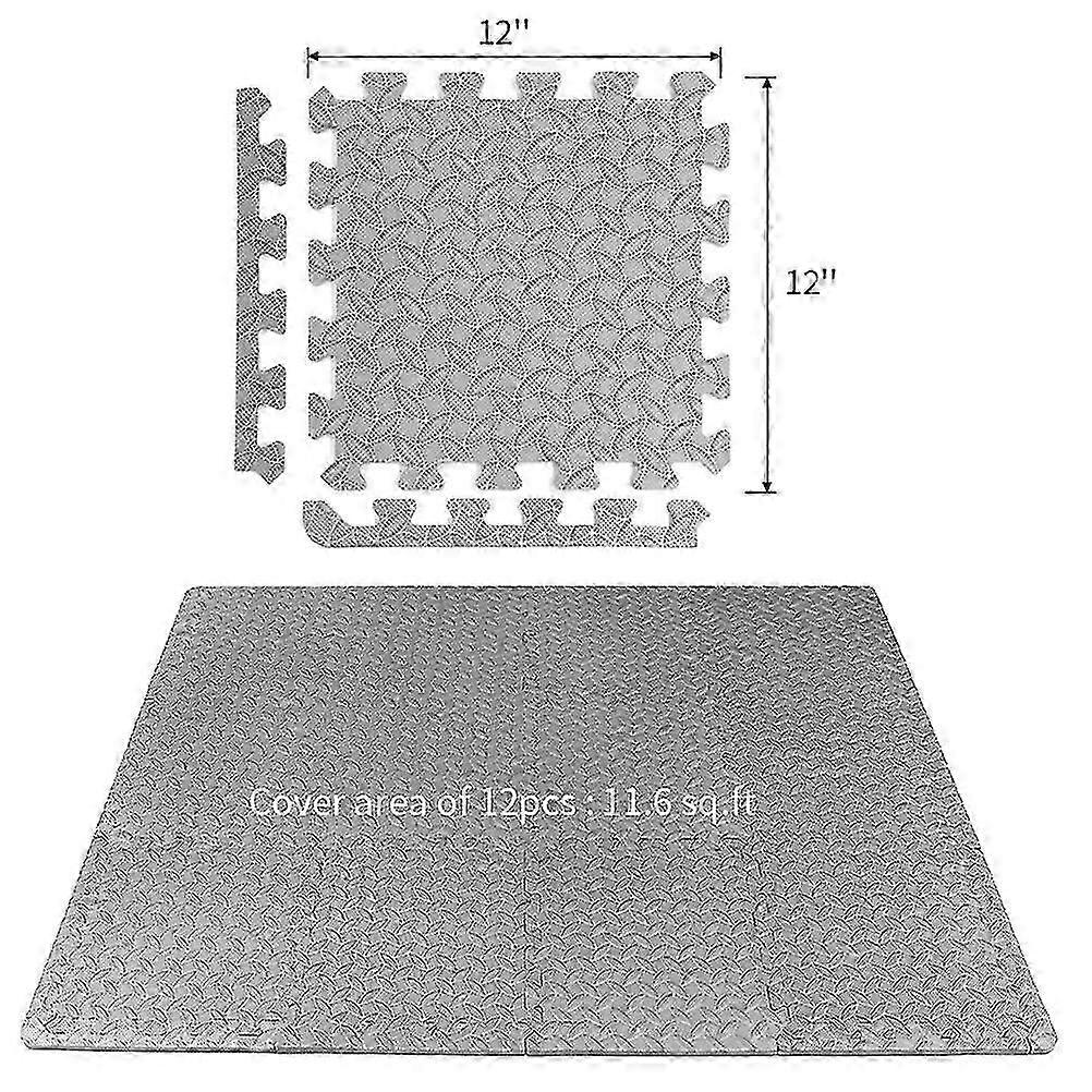 12Pcs 30x31x1.2cm EVA Foam Gym Floor Mats Gray Black Tiles