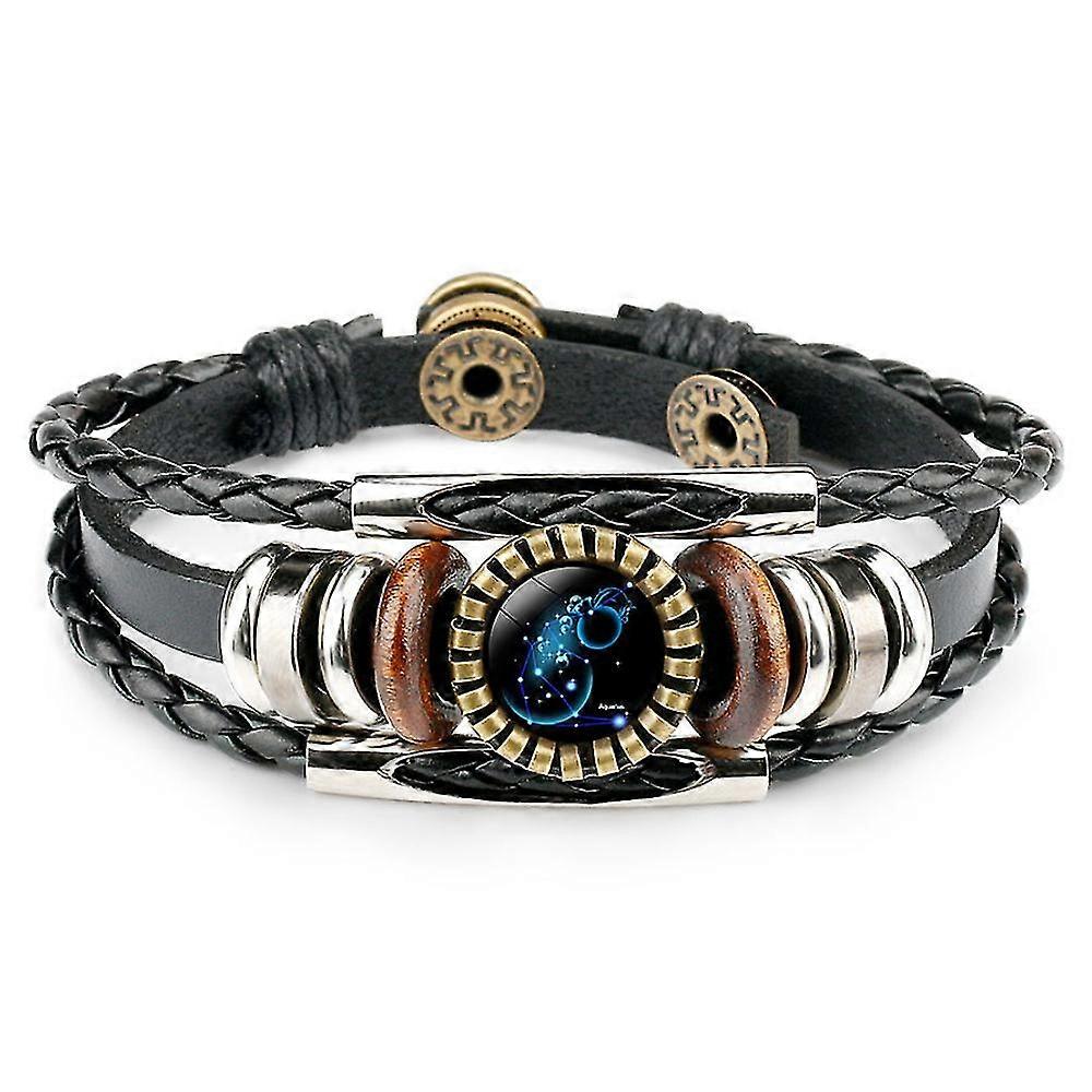 12 Horoscope Sign Bracelet Unisex Faux Leather Woven Wristband Gift