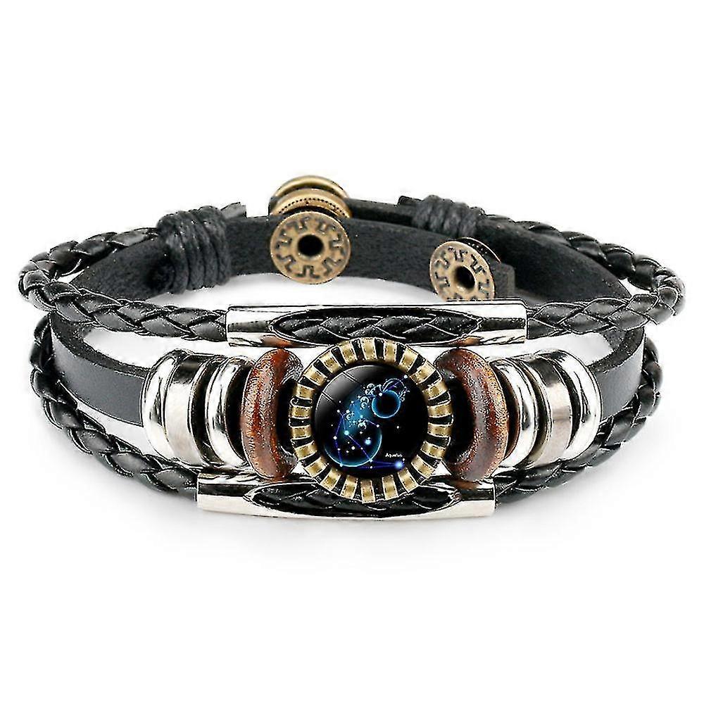 12 Horoscope Sign Bracelet Unisex Faux Leather Woven Wristband Gift