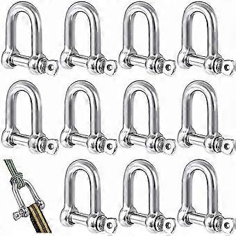 12 Pcs D Stainless Steel Shackles For Mountaineering/hiking/anchor Chain/sailing, Made Of 304 Stainless Steel, Stainless Steel Shackle With Maximum Lo