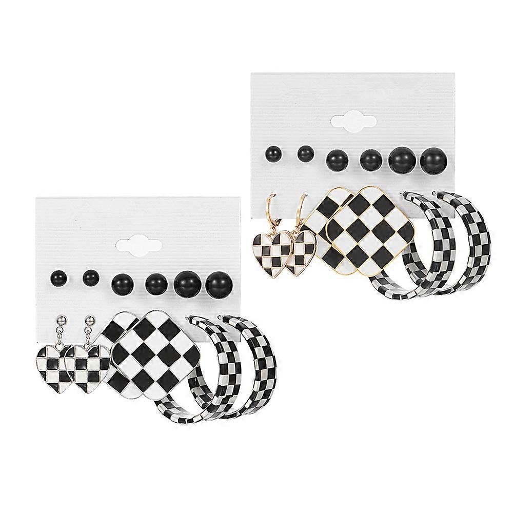 12 Pairs Fashion Black White Striped Checkered Dangle Drop Earrings Ear Studs