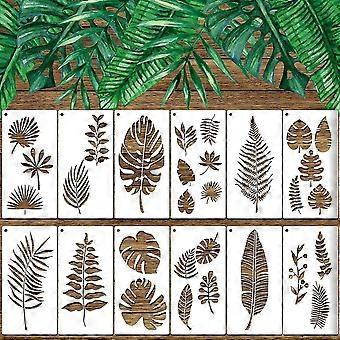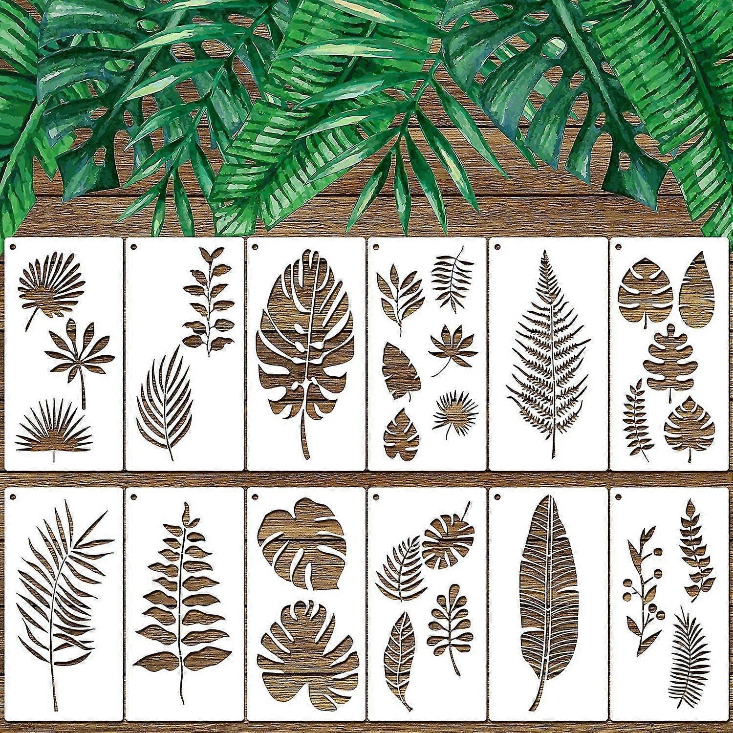 12 Pieces Tropical Leaf Stencils, Fern Leaf Monstera Palm Leaf Turtle Leaf Wall Stencil Template Botanical Leaves Reusable