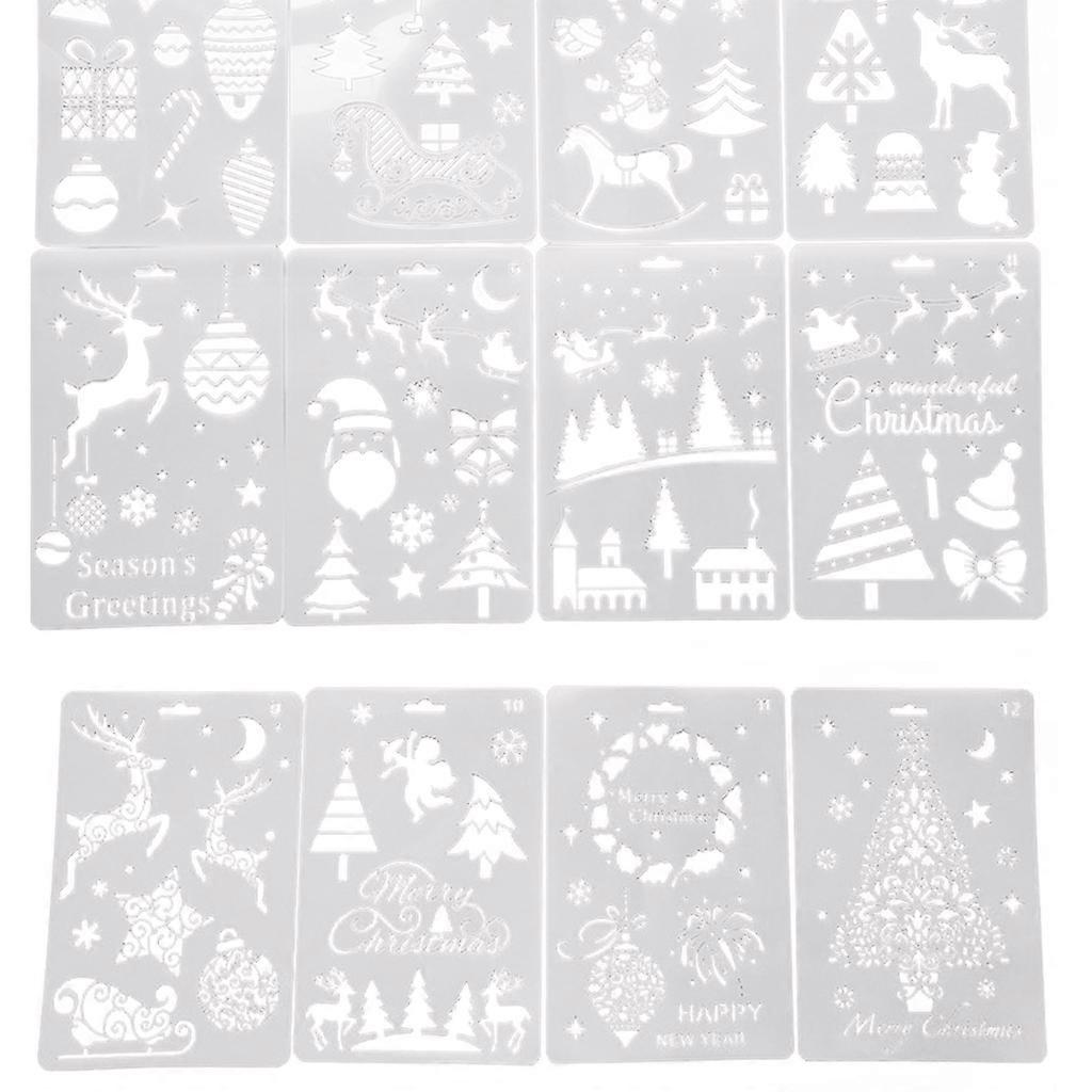 12 Pieces Christmas Stencils Reusable PET Templates for Kid Painting Furniture Decor DIY Scrapbooking Christmas Favor